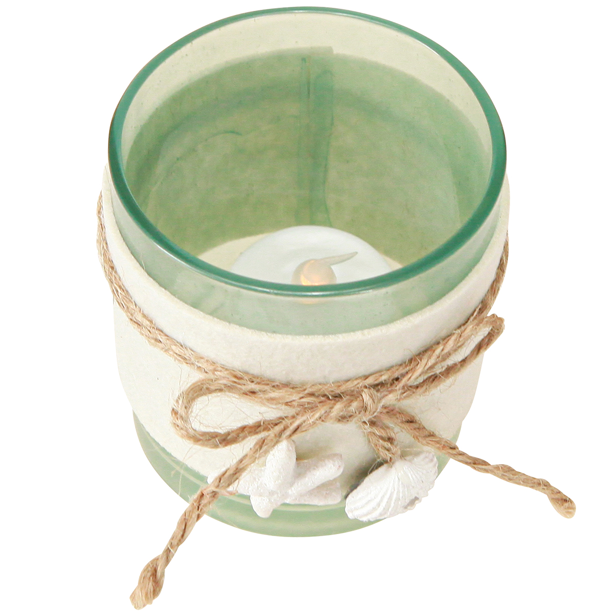 Mit ihrem maritimen Look und den Farben Blau, Grün und Weiß eignen sich die Teelichthalter optimal zur Kombination mit weiteren Artikeln von Floristik21: