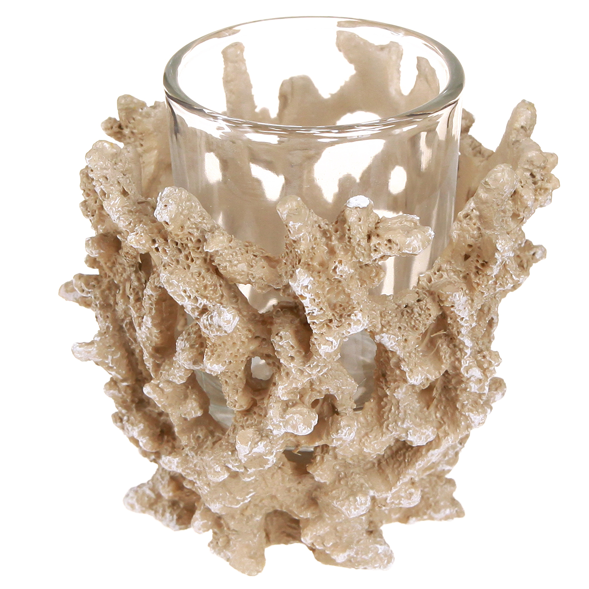Produktname: Teelichthalter Korallen Deko maritim Creme Braun 2St Tischdeko Sommer Look durch Polyresin