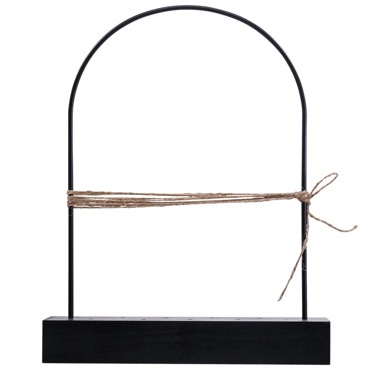 Eine mehrfach waagerecht gespannte Jutekordel sorgt dafür, dass dabei alles an seinem Platz bleibt und bietet zudem weitere Deko-Möglichkeiten. Bogen und Dekoleiste sind in mattem Schwarz gehalten, sodass die Blumenleiste für Trockenblumen in jeden Einrichtungsstil und zu vielen Anlässen rund um das Jahr passt!