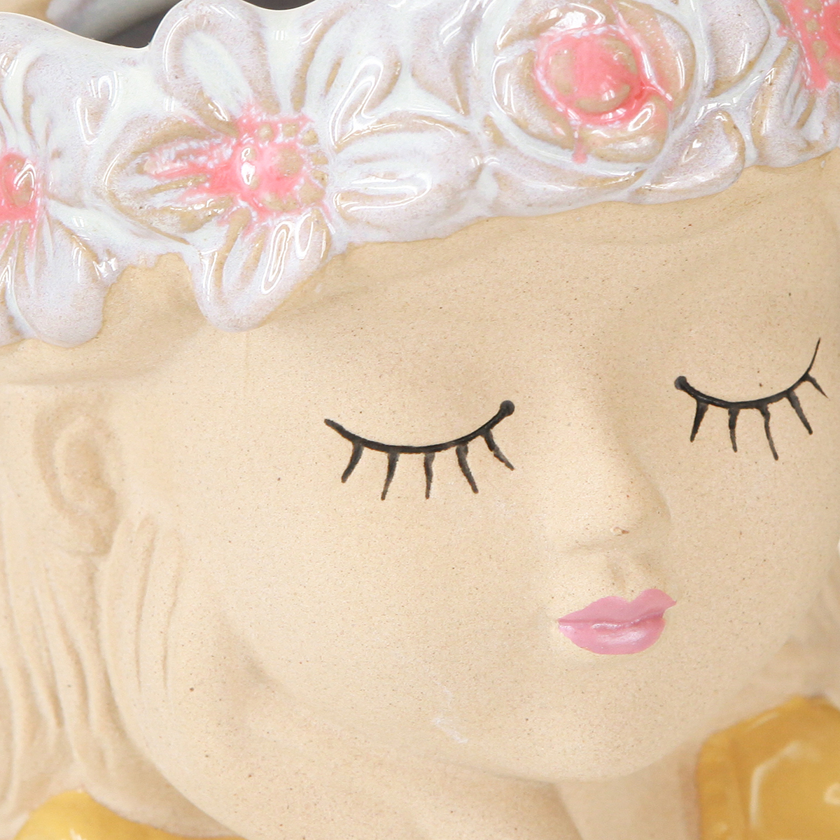 Entdecken Sie diese zauberhafte Deko-Vase aus hochwertiger Keramik! Das verträumte Design eines kleinen Mädchens mit Blumenkranz lädt zum dekorativen Träumen ein.