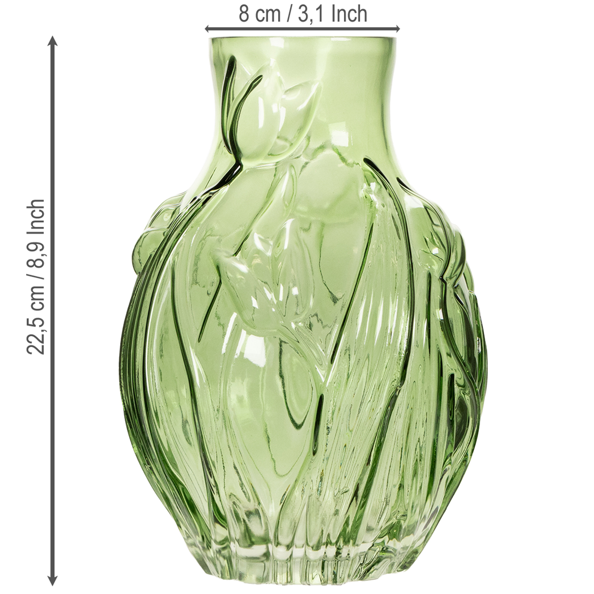 Glastulpenvase 22,5 cm mit geprägtem Tulpendesign in Grün für stilvolle Dekoration