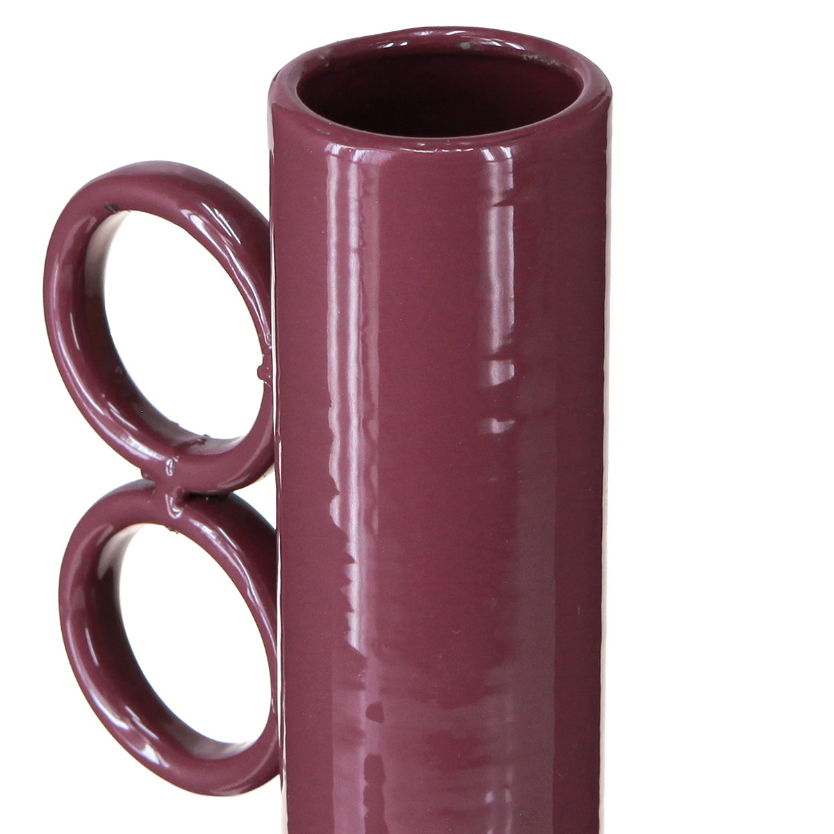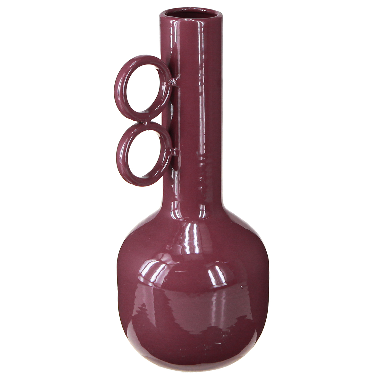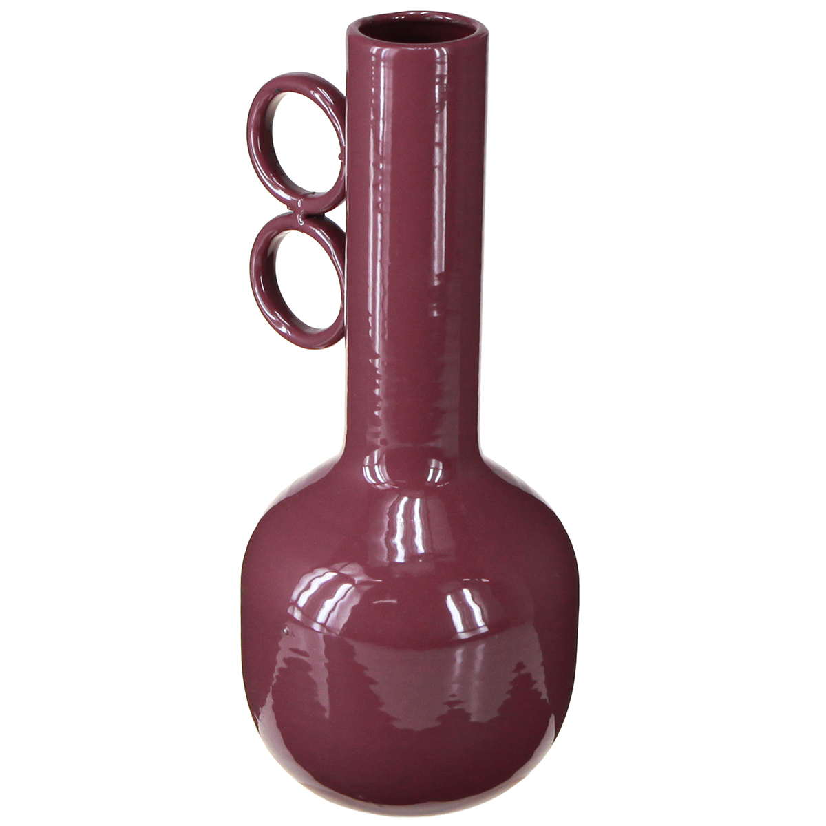 Design Vase mit langem Hals und runden Griffen aus Metall in glänzendem Rot – 25 cm