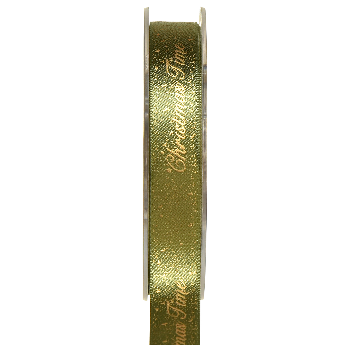 Produktname: Weihnachtsband Christmas Time Band Grün Gold 15mm 20m