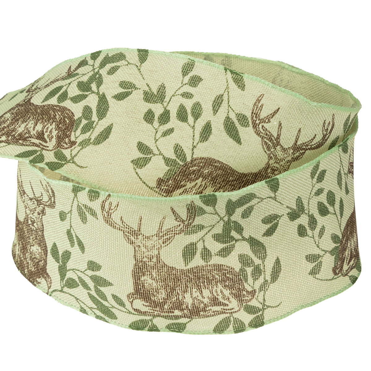 Weihnachtsband mit Hirsch-Motiv Band Hellgrün 40mm 20m