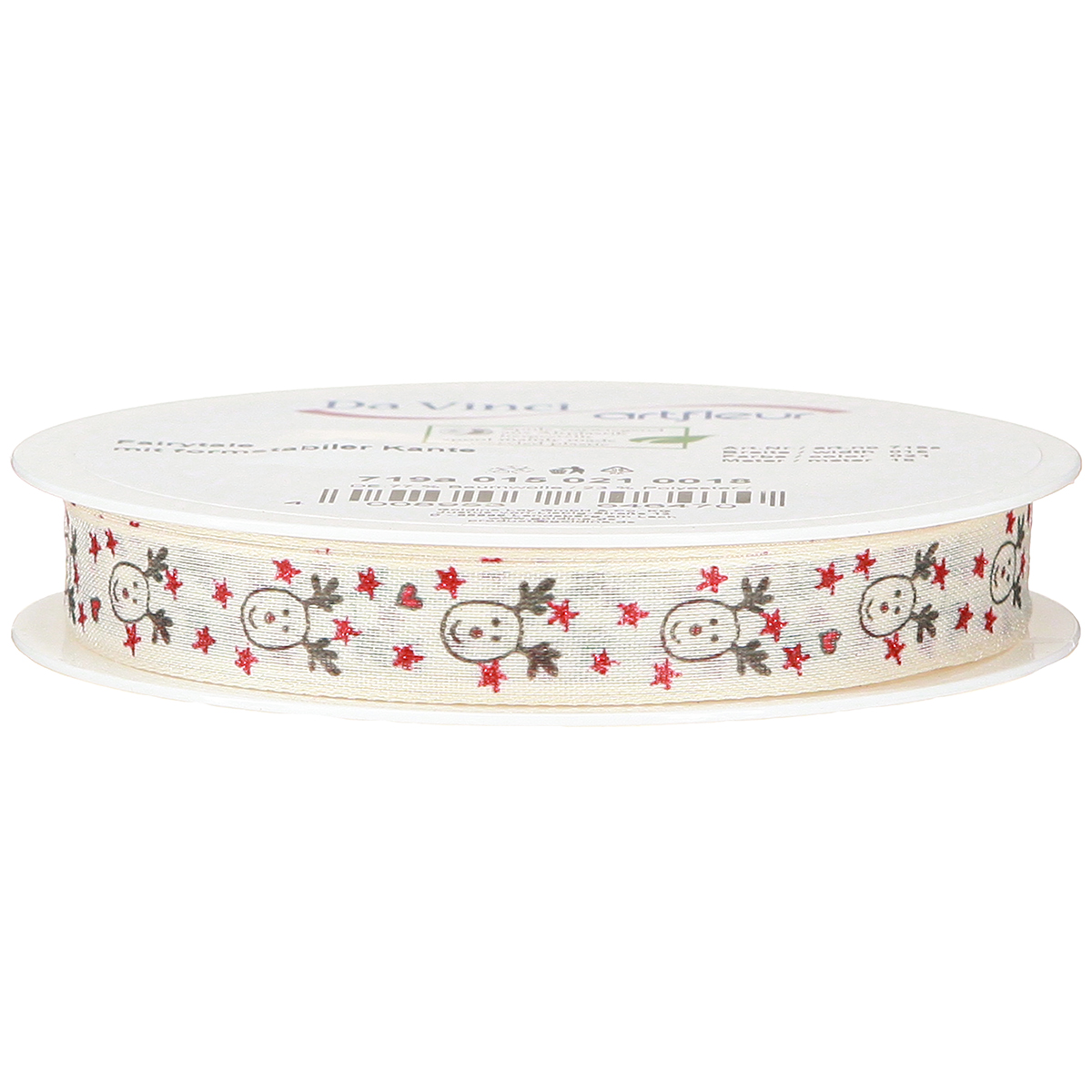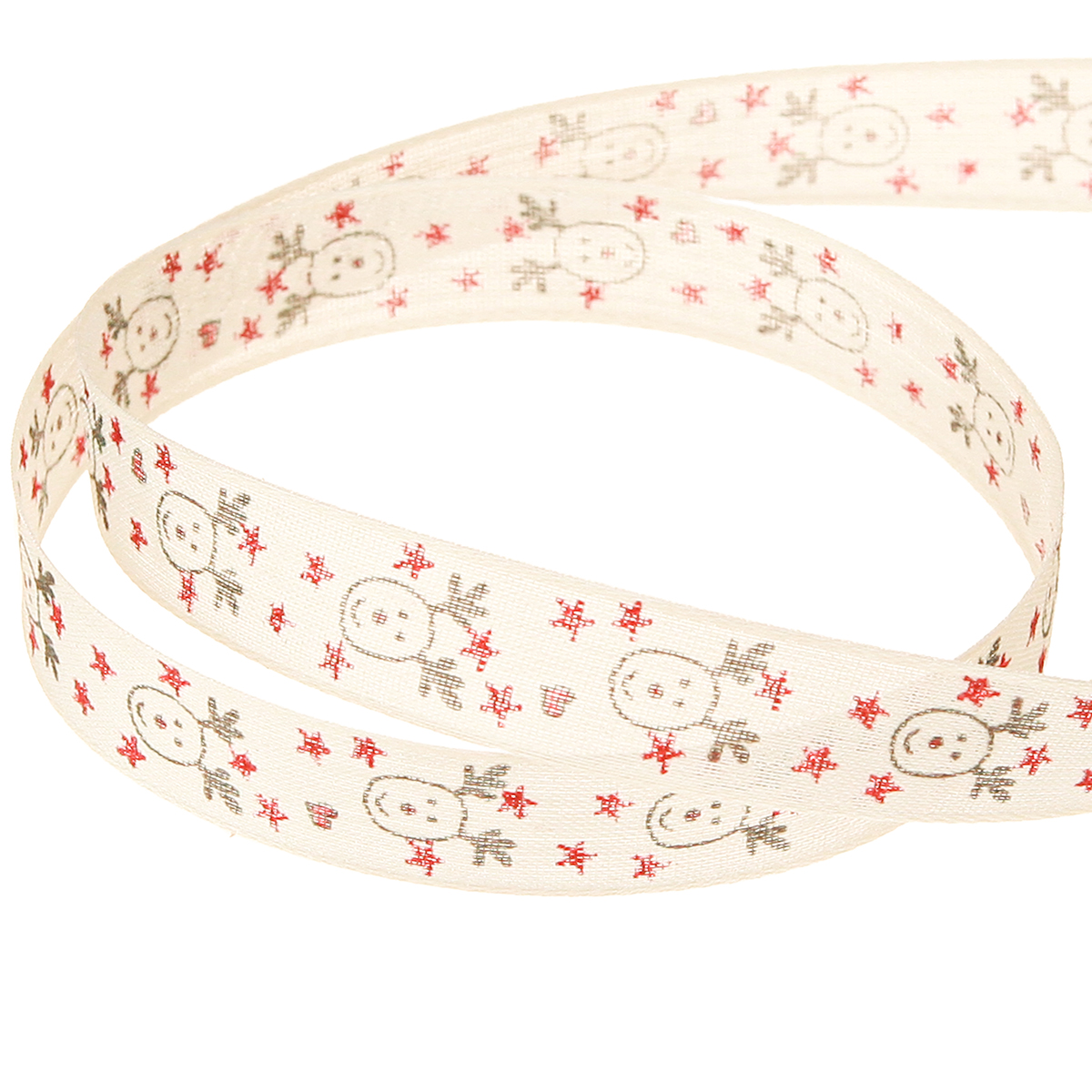 Produktname: Weihnachtsband Rentiere Creme Rot 15mm 18m Dekoration Geschenkband