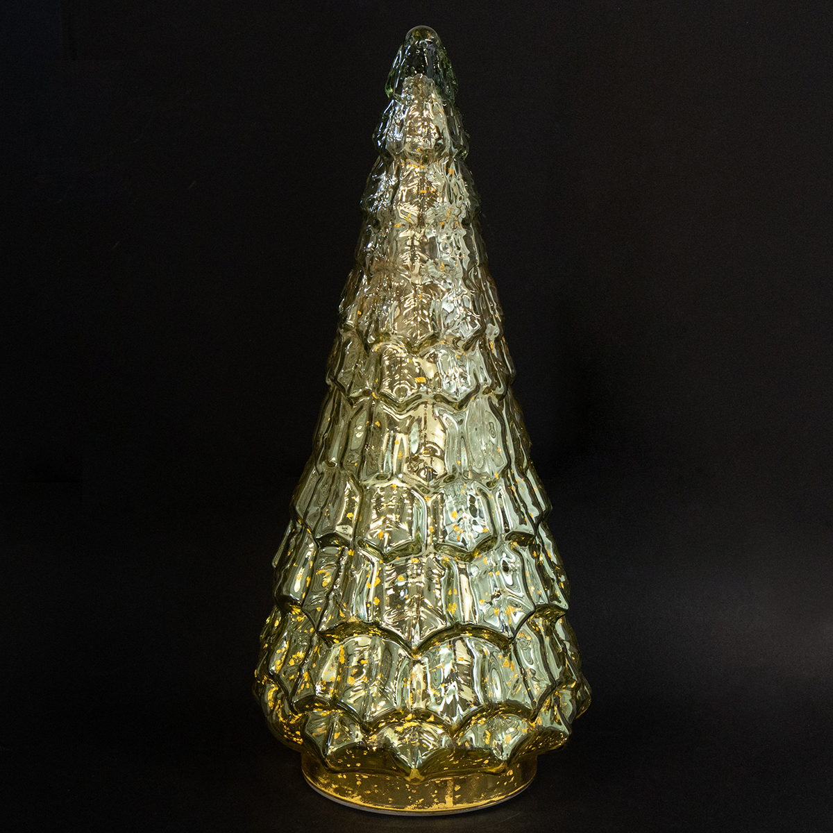 Produktname: Weihnachtsbaum mit LED-Licht, Glas und Goldakzenten, 38 cm