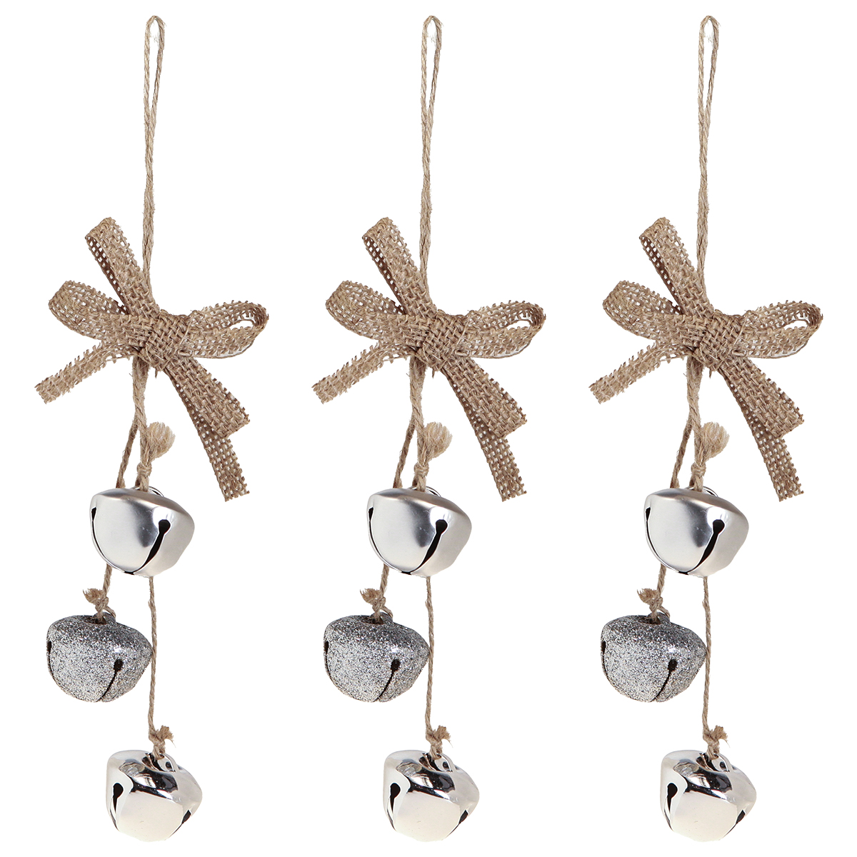 Veredeln Sie Ihre Weihnachtsdekoration mit diesem 3er-Set an silbernen Weihnachtsglöckchen, die mit ihrem eleganten Design in Glanz, Matt und Glitter jeden Betrachter verzaubern. Ideal für Floristen, Dekorateure und Einzelhändler im Bereich der saisonalen Dekoration.