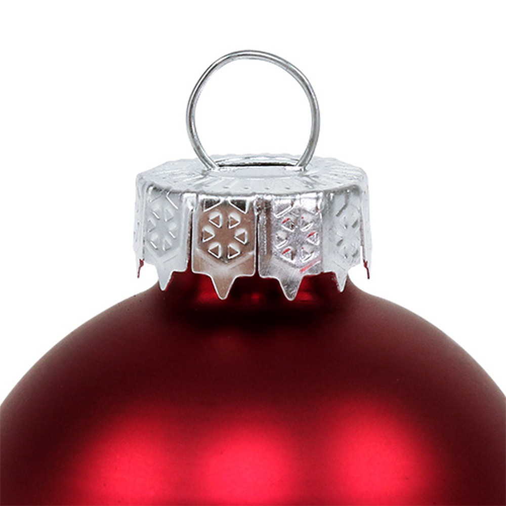 Die roten Weihnachtskugeln aus Glas befinden sich in einer Box zu insgesamt 24 Stück, von denen jeweils 12 matt sind beziehungsweise glänzen. Jede Glaskugel besitzt einen Durchmesser von ungefähr 4 Zentimetern und ist inklusive Öse circa 5,5 Zentimeter hoch.