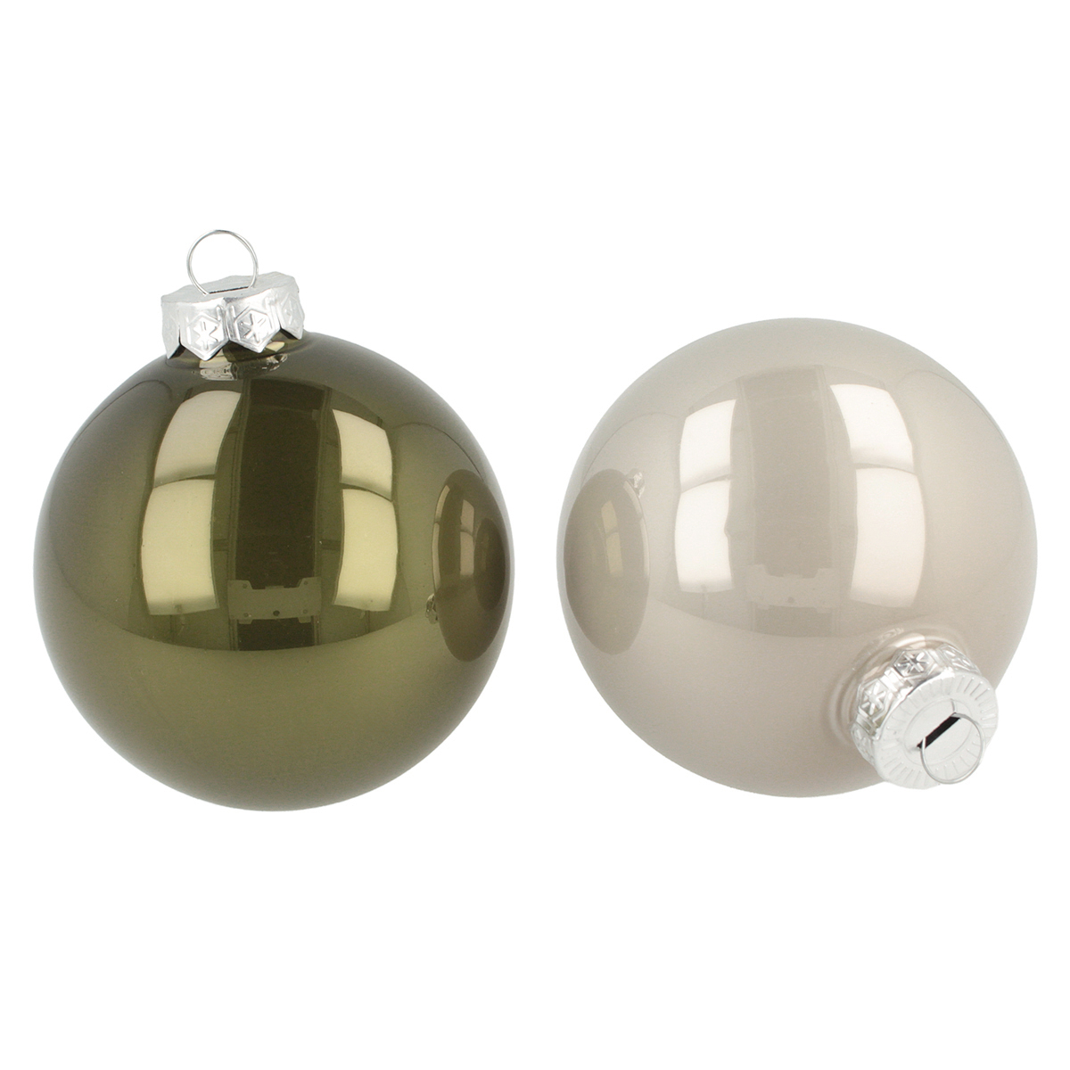 Produktname: Glaskugeln Weihnachtsdeko Olivgrün Silbergrau Ø7,5cm 12er Set