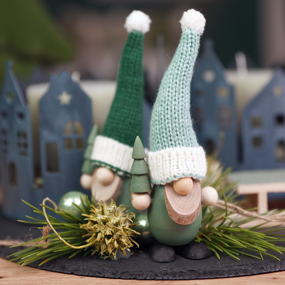 - Dekorative Weihnachtswichtel aus Holz in Grün Mint - 2-fach sortiert