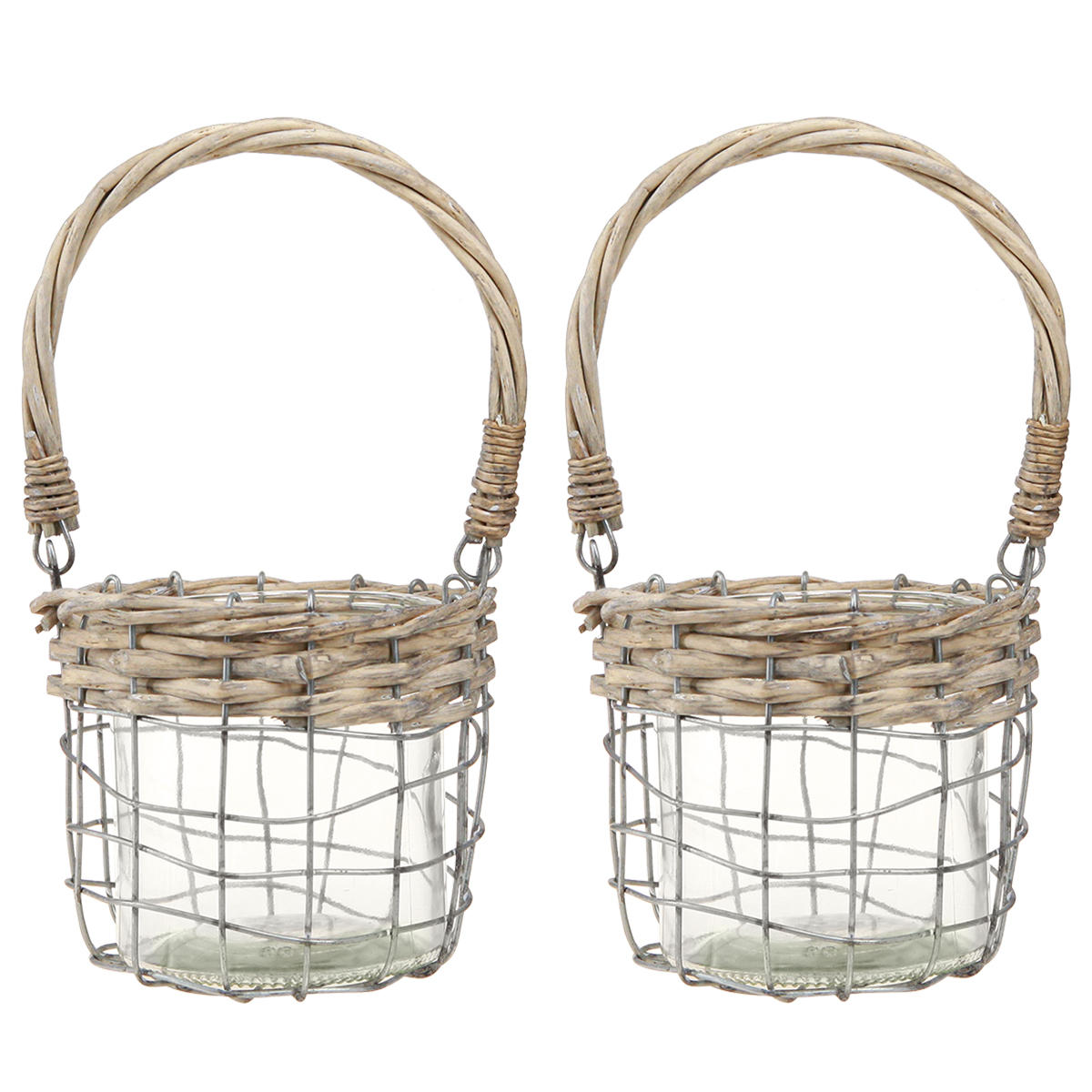 Produktname: Windlicht Hängedeko Metall Glas Weide 2er Set Garten Balkon Vintage