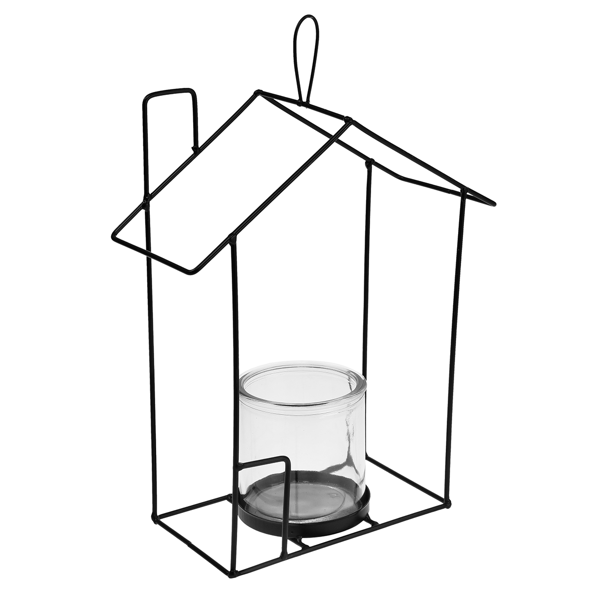 Windlicht zum Hängen Glas Metall Deko Haus Schwarz H25cm