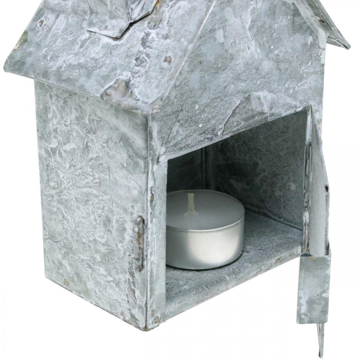 Produktname: Windlicht Haus Metall, Shabby Chic, Weihnachtsdeko, Weiß gewaschen, Antik-Look H14,5cm