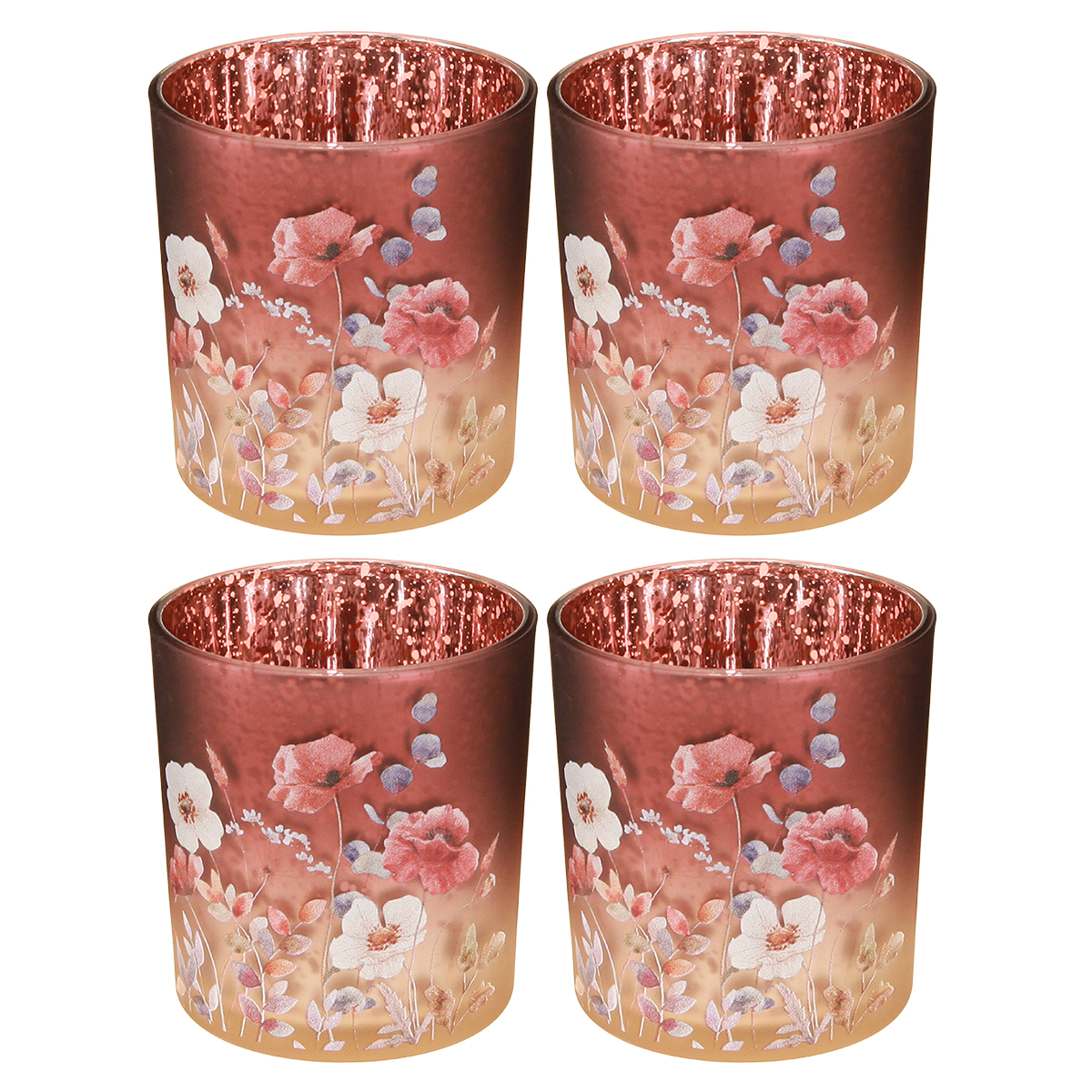 Windlicht Set aus Glas 4-teilig mit Blumenmotiv in Rot für stimmungsvolle Dekoration 8 cm