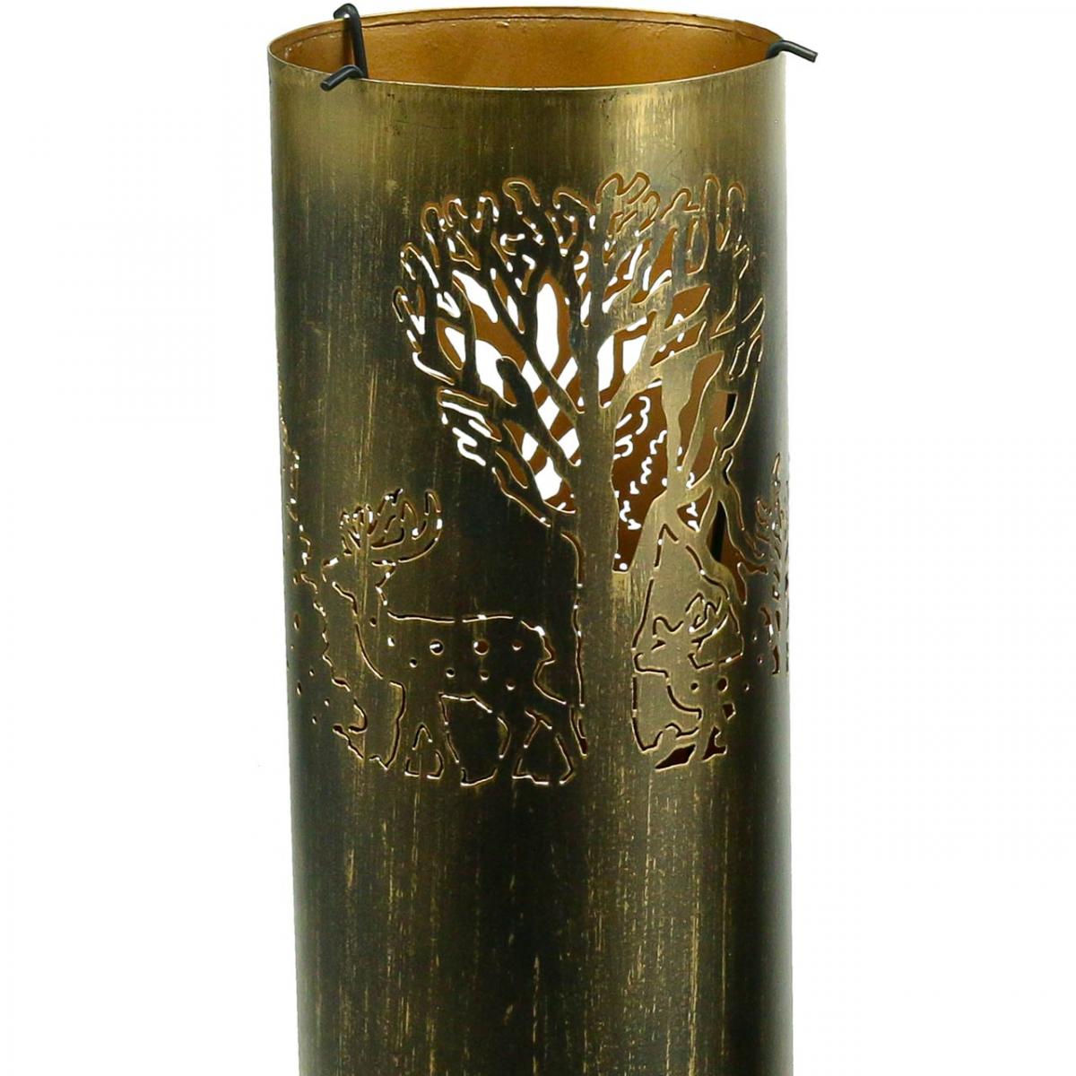 Stellen Sie die drei Vintage-Kerzenhalter aus Metall zusammen oder einzeln zum Beispiel am Fenster auf und lassen Sie die beleuchtete Waldszene bei sich zu Hause lebendig werden.