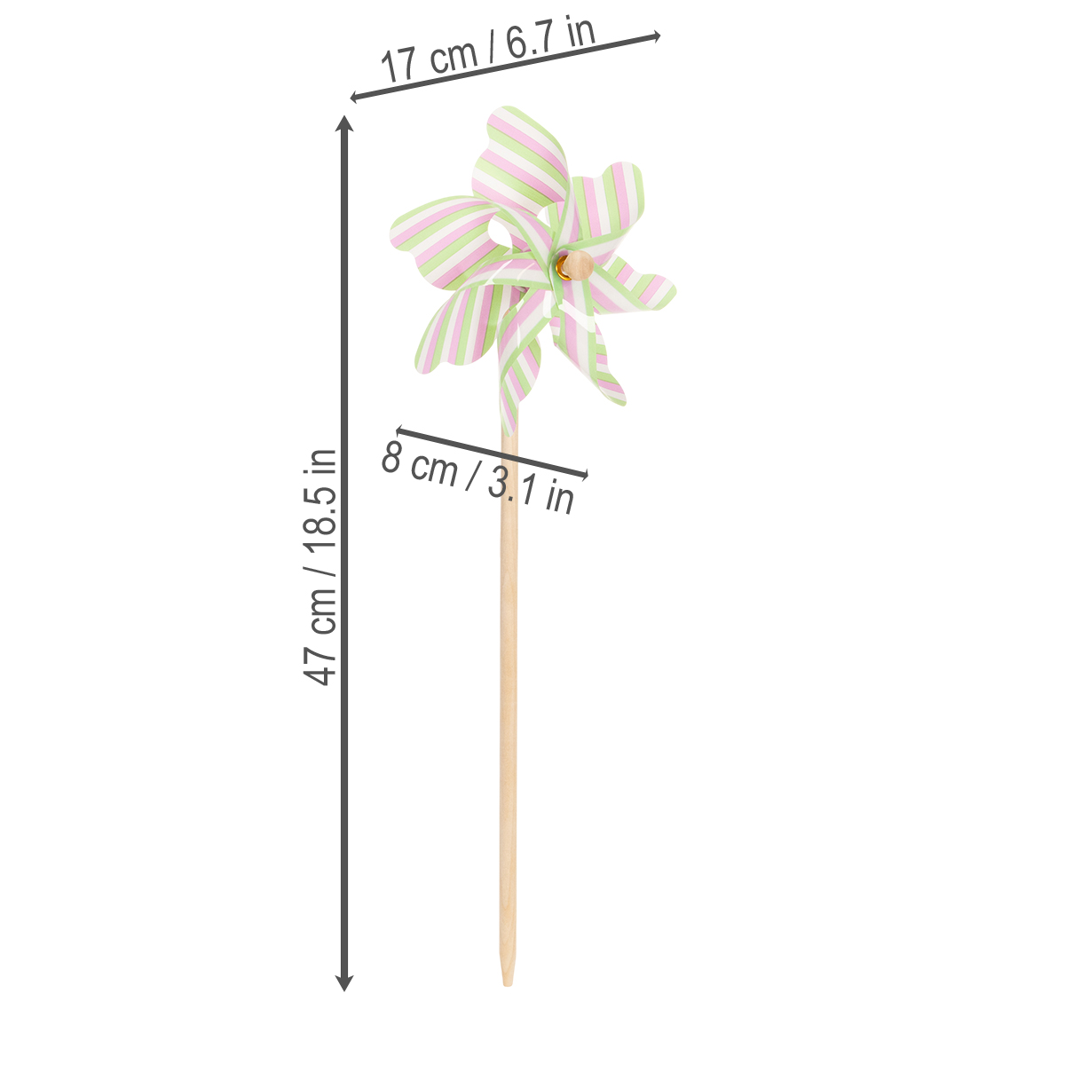Die robusten Holzstäbe sorgen für festen Halt, während die Flügel aus hochwertigem Kunststoff bereits bei leichtem Wind zu drehen beginnen. So wirkt Ihr Outdoor-Bereich lebendig und einladend.