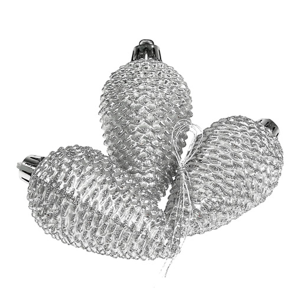 Produktname: Zapfen Plastik Silber 8cm 6St. zum Hängen